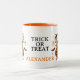 Dieser niedliche personalisierte Halloween-Trick oder zwei Töne Kaffee-Tasse bietet bezaubernde dalmatinische Welpen mit Fledermäusen und einen Kürbislaterne Kürbis. Personalisieren Sie mit Ihrem Namen und Ihrem speziellen Urlaubstext. Spaß für Geschenktaschen und Gastgeschenke.