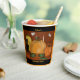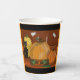 Halloween Decor Party Cups mit personalisiertem Text. Niedliches Design mit Kürbissen, Gespenstern, Kerzen und gestopfter schwarzer Katze. Halloween Schild Sprichwort Glückliches Halloween mit lustigem Kürbis.