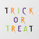 Trick oder verwöhnen bunt leckere Typografie Halloween Dekorationsfenster klammern. Schwarz, Orange, Grün, lila bunte Typografie.