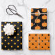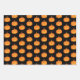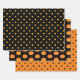 Halloween Design Wrapping Paper Set mit drei verschiedenen orangen und schwarzen Halloween Designs.