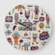 Halloween Doodles, wackeliger Cartoon nahtloses Se Große Wanduhr