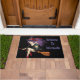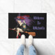 Door-Matte mit schwarzer Hintergrundfarbe und Halloween-Hexenprint. Passen Sie diese Matte an oder kaufen Sie, wie es ist.