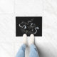 Doormatte mit schwarzem Hintergrund und Halloween-Fledermaus. Passen Sie diese Matte an oder kaufen Sie, wie es ist.