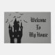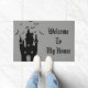 Doormatte mit grauem Hintergrund und einem Halloween-Spuk Hausprint. Passen Sie diese Matte an oder kaufen Sie, wie es ist.