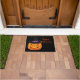 Halloween-Türmchen wird in Schwarz mit einem festlichen Kürbis-Hexenprint gezeigt. Passen Sie diese Matte an oder kaufen Sie, wie es ist. Bild