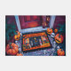 Ein Halloween-Portier mit Kürbissen, Skeletten und einem beängstigenden Hausdesign empfängt die Gäste zu einem fröhlichen Fest. Die Türe liegt auf der Vorderseite, umgeben von Kürbissen und Skeletten. Herzlich willkommen bei Ihren Lieben im Stil mit dieser - erstaunlich farbenfrohe Halloween-Nachricht. Entwerfen Sie Ihre Füße vor der Türmatte.