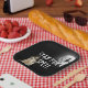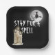 Weiße Tropfkerzen auf schwarzem Hintergrund mit einer Hexe, die auf Vollmond mit Fledermäusen fliegt. Die Hintergrundfarbe kann geändert werden.