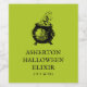For your trick or treat "treat," this funny Halloween theme wine label is a funny clever way to celebrate. The black bubbling cauldron image sits above custom text that says "Halloween elixir." In parenthesis, it says what it really is ("it's wine" or your drink of choice). Makes a great Halloween party favor!