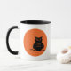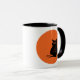 Eine Eule vor einem vollen orange Mond für Halloween.