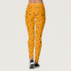 Die Leggings dieser Frau sind zu Halloween, mit einem himmlischen Motiv, das mit kleinen schwarzen Sternen auf hellen Orangen bedeckt ist.