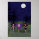 Raven, Phoenix und Eva laufen zu Halloween am Friedhof unter Vollmond, während Fledermäuse über dem Kopf fliegen.