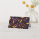 Diese gefaltete Platzkarte wird in einem festlichen Halloween-Fledermausdruck gezeigt. Passen Sie dieses Objekt an oder kaufen Sie, wie es ist.
