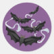 Kleiner Rundformaufkleber lila mit einem Halloween-Fledermausdruck. Passen Sie dieses Objekt an oder kaufen Sie, wie es ist.