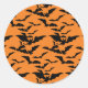 Rundform Aufkleber in orange mit einem Halloween-Fledermausdruck. Passen Sie dieses Objekt an oder kaufen Sie, wie es ist.