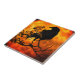 Halloween-Abendravenbild mit einem orangefarbenen Mond im Hintergrund.