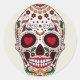 Personalisieren Sie Ihre Aufkleber, indem Sie Ihren Namen oder einen beliebigen Text hinzufügen, den Sie auswählen. Der Halloween-Zuckerschädel mit einem Mondglühen.