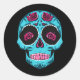 Personalisieren Sie Ihre Aufkleber, indem Sie Ihren Namen oder einen beliebigen Text hinzufügen, den Sie auswählen. Der Halloween-Zuckerschädel mit einem Mondglühen.