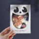 Niedliche Halloween-Fotokarte mit einem Foto in einem Schwarz-Weiß-Skelett in Kürbislaterne.