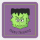 Dieser quadratische Aufkleber wird mit einem Halloween-Frankenstein-Kunstdruck gezeigt. Passen Sie dieses Objekt an oder kaufen Sie, wie es ist.