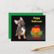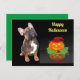 Französische Bulldoggen warten auf Halloween. Mit wunderschönen Bildern und Motiven. Da darf der bunte Kürbis und die Sonnenblume nicht fehlen. Alles ist schön herbstlich geschmückt.