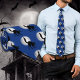 Halloween Krawatte mit schwarzer Katze und Vollmondmuster. Dunkelblaue Farbe mit schwarzer Katze, die sich den Rücken zum Furcht erregenden ausstreckt, gegen einen Vollmond. Ein Muster und Bild mittlerer Größe, das für das Büro nicht zu gruselig ist.