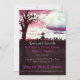 Toter Baum auf dem Friedhof mit Vögeln, die mit rosa Himmel über den Friedhof fliegen - mit halb bedecktem Vollmond, geeignet für Halloween, Gothday oder eine besondere Party Einladung oder jede Art von Anlass. Der gesamte Text ist vollständig anpassbar.