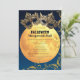 Mit dieser atemberaubenden Einladung laden Sie Ihre Gäste zu einem glamourösen Halloween-Maskenball ein. Mit goldenen Masken, Vollmond, knackigem Hintergrund und vergoldeten Glitzer-Wirbel, Set für ein elegantes und geheimnisvolles Ereignis.