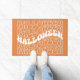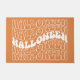 Dieses auffällige Halloween-Design zeichnet sich durch eine fette und spielerische Wiederholung des Wortes "HALLOWEEN" in einem welligen, rückwärts inspiriert Schriftart aus. Der Text ist in mehreren Ebenen angeordnet, wodurch ein visuell dynamisches Muster entsteht, in dem der Betrachter gezeichnet wird. Das zentrale Wort wird in einer soliden, lebendigen Orange hervorgehoben, wodurch es sich von dem umgebenden Text abhebt, der in derselben Farbe dargestellt ist. Die gewellte Typografie verleiht dem Halloween-Geist ein Gefühl von Bewegung und Energie, das ihn perfekt einfängt.