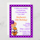 Eine Halloween-Geburtstagseinladung mit Kürbis und Geschenk mit Ballonen und lila Polkapunktgrenze. Vervollkommnen Sie für Mädchen und Jungen alles Alters. Personifizieren Sie einfach den Text mit Ihren Partysonderkommandos. Graphics© http://www.delightful-doodles.com/