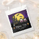 Diese lustige und spukhafte Tasche bietet niedliche Vampire neben einem gekräuselten Spuk Haus. Im Hintergrund ist ein Vollmond mit Fledermäusen und ein lila Nachthimmel mit Sternen. Der Text kombiniert dekorative und serf Schriftart für ein stilvolles und modernes Aussehen. Das ist perfekt für eine Geburtstagsfeier zu Halloween-Themen.