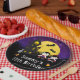 Dieser lustige und spukhafte Teller besticht durch niedliche Vampire neben einem gekräuselten Spuk Haus. Im Hintergrund ist ein Vollmond mit Fledermäusen und ein lila Nachthimmel mit Sternen. Das ist perfekt für eine Geburtstagsfeier zu Halloween-Themen.
