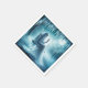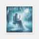 Eine geistreiche Figur, die in Weiß gezogen wird, sitzt auf einer Schaukel, die eine Eistüte in einer surrealen, unheimlichen Waldlandschaft hält, die von Vollmond beleuchtet wird