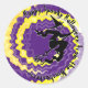 Halloween Fliegerwitsche auf Broomstick mit Zauberspruch Swirl niedliche lustige Aufkleber. Mit vollständig anpassbarem Text. Großartig wie personalisierte Gastgeschenk-Tags, Geschenketiketten für Halloween-Leckereien. Lila, schwarz und gelb