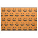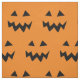 Halloween-Gewebe mit geschnitztem Kürbisgesichtsmuster. Beängstigendes Kürbislaternedruckgewebe. Orange und Schwarzes entwerfen mit dem KürbisHauptschnitzen. Partyversorgungen und -zusätze des Spaßes DIY für Erwachsene und Kinder. Stellen Sie Ihre eigene Kostümausstattung her.