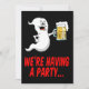 Halloween-Party mit Betrunkenem Cartoon Geist und Bier einladen. Eine große Einladung für ein erwachsenes Halloween-Party. Der Text lautet: "Wir haben ein Party... und das ist kein Bootblatt!"