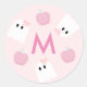 Halloween Ghost Girl & Pumpkin Pink Monogramm Runder Aufkleber