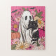 Dieses niedliche Halbwunder-Puzzle besticht durch einen charmanten Geist, der eine mit Augen schwarze Katze knuddelt, umgeben von stinkenden Sturmfloralen, Kürbissen und flatternden Fledermäusen - alles Set vor einem kühlen rosa Hintergrund. Dieses niedliche und eigenartige Design verbindet die wunderschöne Jahreszeit mit dem Charme des Herzens und dem geistlichen Flair, perfekt für jeden, der Halloween Lieben mit einer Seite von Blume und Spaß.