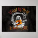 Niedlicher Aquarellgeister mit Gitarre und Song "I Found My Thrill On Booberry Hill" mit spitzfindig geschliffenem Baum.