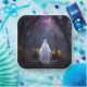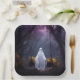 Weißer Geist sitzend auf einem Waldschwung im dunklen Wald für Halloween-Party