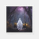 Weißer Geist sitzend auf einem Waldschwung im dunklen Wald für Halloween-Party