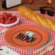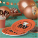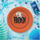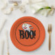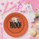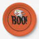 Papiertafel aus Party in orange und mit dem Wort boo und einem niedlichen Geist. Passen Sie dieses Objekt an oder kaufen Sie, wie es ist.