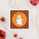 Niedlicher Halloween Geist mit einer Kerze und einem Kürbis auf schwarz-orange Papier Napkins.