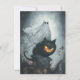 Halloween-Szene mit einem Geist, der auf einer schwarzen Katze reitet