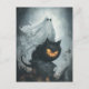 Halloween-Szene mit einem Geist, der auf einer schwarzen Katze reitet