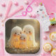 Drei bezaubernde Geister-ähnliche Kreaturen mit rosigen Wangen und lächelnden Gesichtern stehen in einem sanften, leuchtenden Licht zusammen