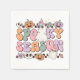 Niedliche, lustige, farbenfrohe, feminine Retro-Stil Halloween Ghosts Spooky Jahreszeit Papier Servietten mit Geistern mit Sonnenbrille und Hexenhüte, Kürbisse, Blume und Schädel, und Text von Melon, Lavendel, Rosa und aquamarin, dass Spooky Season liest!