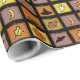 Cute Halloween gift wrap or party decor paper featuring ghosts, bats, spiders, trick-or-treat candy, moons and witch hats.