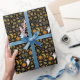 Creative Halloween or October birthday gift wrap or party decor featuring ghost, witch, pumpkin, bat, spider and trick-or-treat candy pattern art.