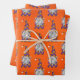 Niedliches Gnomen in einem Kürbisweiler-Anzug auf orangefarbenem Hintergrund