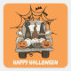 Halloween Gnome im Spider Web Truck Quadratischer Aufkleber